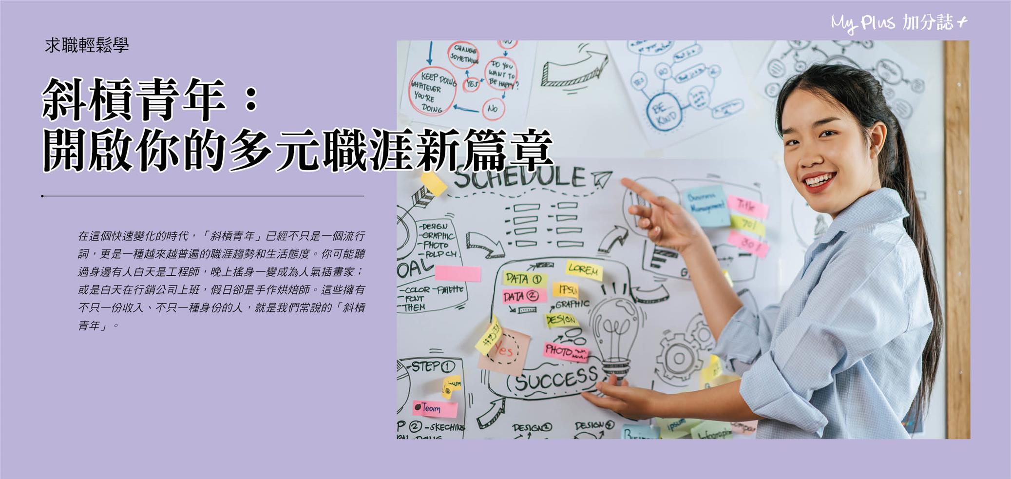 在這個快速變化的時代,「斜槓青年」已經 不只是一個流行詞,更是一種越來越普遍的職涯 趨勢和生活態度。你可能聽過身邊有人白天是工 程師,晚上搖身一變成為人氣插畫家...