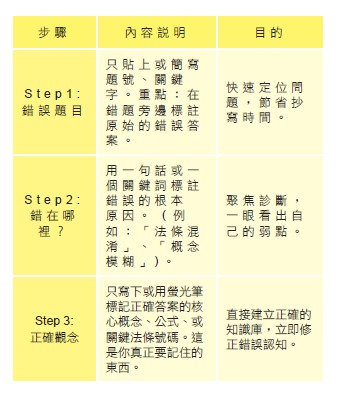 許多考生也做錯題本,但為何無效?因為他們只是複製貼上,把錯的題目剪下來,把對的答案抄一遍。這又是前面提過的無效抄寫,大腦沒有進行任何反思。